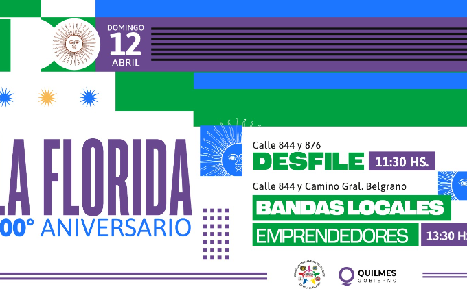 El Municipio de Quilmes invita a las y los vecinos a los festejos por el 100º aniversario de Villa La Florida, que se llevarán adelante el domingo 12, con el tradicional desfile de instituciones locales, feria de emprendedores y stands gastronómicos, y que tendrá una nueva edición del festival Somos Quilmes, con shows artísticos y música en vivo, que contará con el cierre a pura cumbia con La Sonora Master.