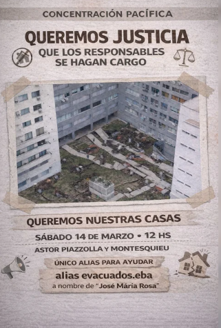 En paralelo, los damnificados pidieron que tanto el Gobierno porteño como la empresa constructora brinden información oficial sobre las acciones a futuro y sobre las condiciones de seguridad del edificio, mientras avanzan las pericias judiciales para determinar las causas del colapso.